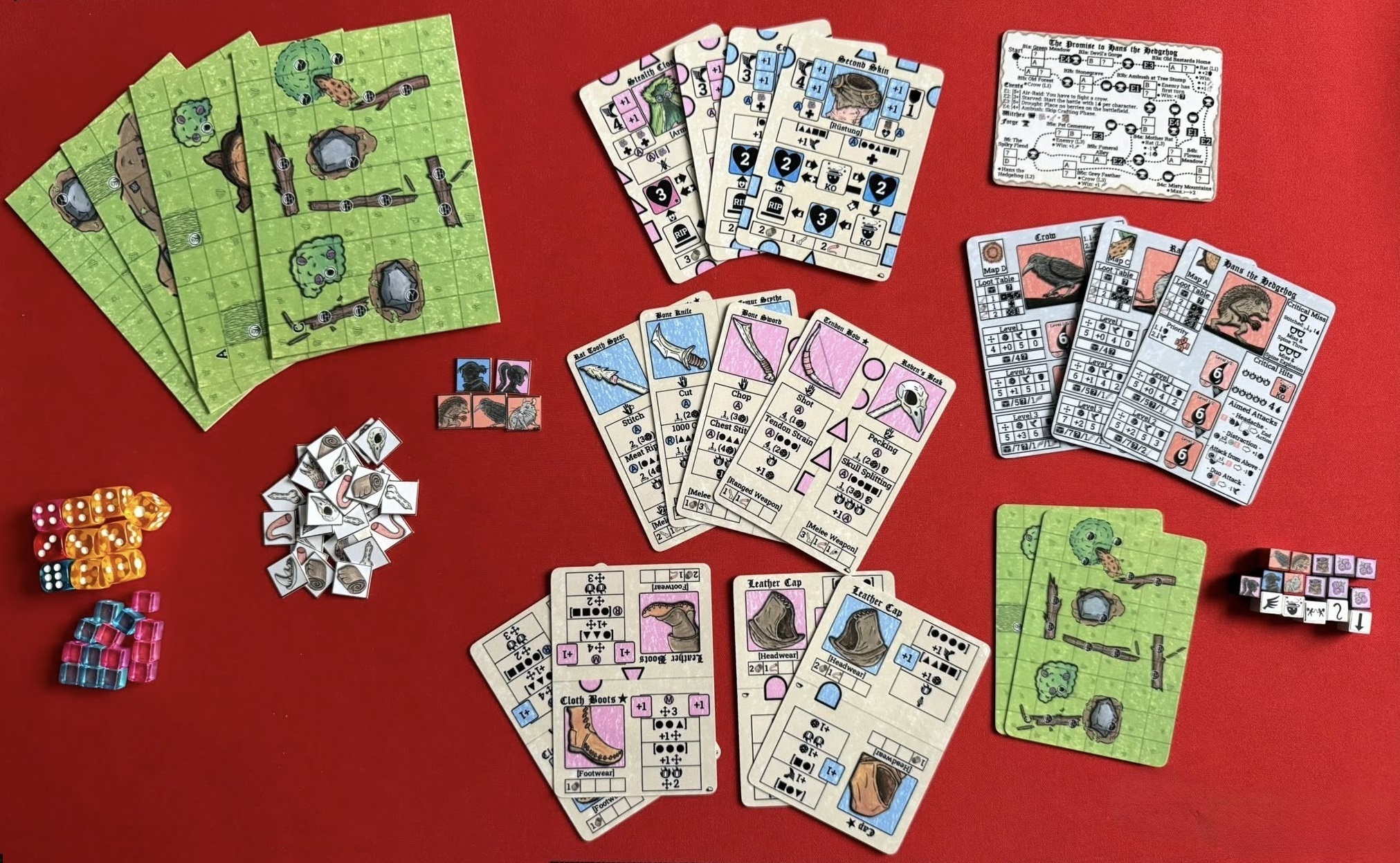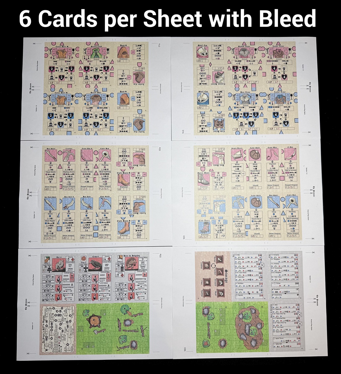 - Compact: Print 18 cards and a few tokens; all you’ll need beyond that are six standard 6-sided dice (12 mm).